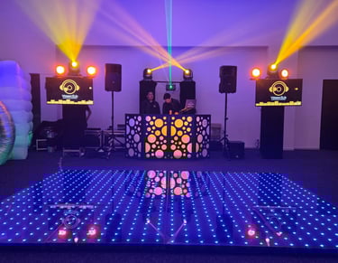 Ofrecemos experiencias completas en entretenimiento: DJs expertos, audio de alta fidelidad, iluminación espectacular, pantallas LED, pistas iluminadas y mucho más para todo tipo de celebraciones, ya sean sociales o corporativas.