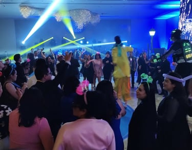 Creamos un ambiente festivo y acogedor, con música, iluminación y detalles que transforman el evento en una experiencia única. Porque este día especial merece vivirse con alegría, magia y momentos que quedarán para siempre en el corazón.
