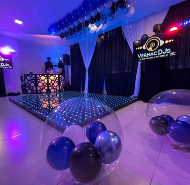 Ofrecemos experiencias completas en entretenimiento: DJs profesionales, audio de alta fidelidad, iluminación espectacular, pantallas LED, pistas iluminadas y mucho más para todo tipo de celebraciones, ya sean